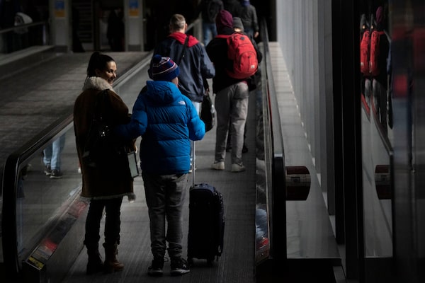 People make their way through Pearson Airport in Mississauga, Ont., on March 14, 2023. A Yukon couple was awarded $10,000 in damages and compensation for a 'horrendous experience' with Air Canada and numerous breaches of the Air Passenger Protection Regulations.Chris Young/The Canadian Press