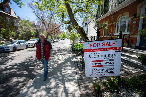 A man passes a home for sale on Sumach Street in Toronto's Cabbagetown neighbourhood on May 21, 2020.Fred Lum/the Globe and Mail