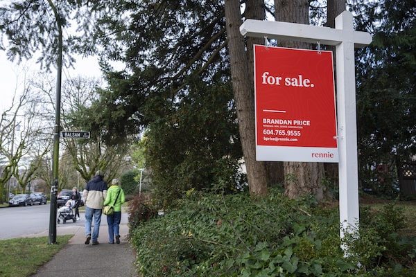 People walks past a for sale sign in Vancouver.Paige Taylor White/The Globe and Mail
