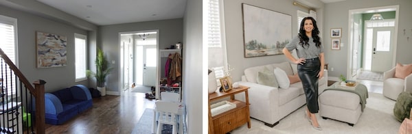 Before and after photos of a room during a home makeover. 'I believe that everyone deserves to live in a beautiful space that feels like home regardless of the budget,' Coutts says.Supplied