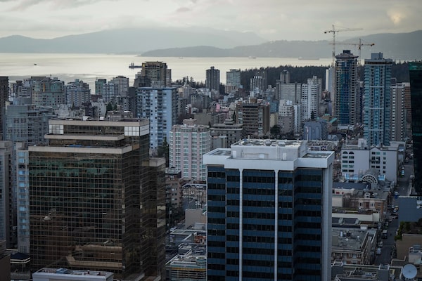 Office towers, condos and apartment buildings in Vancouver in 2023. New survey data suggests it is increasingly difficult to limit rental expenses to one-third of income.DARRYL DYCK/The Canadian Press
