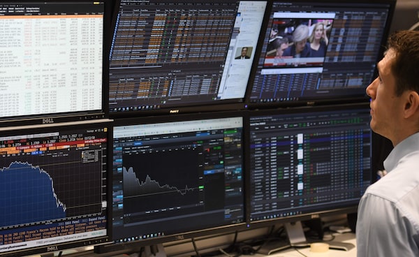 A trader looks at screens of financial data at the offices of CMC Markets in the City of London on Dec. 10, 2018. When new technologies make a big splash, an initial sharp rise in stock prices causes investors to pile in, driving down the cost of capital, and many investors end up taking losses.DANIEL SORABJI/AFP/Getty Images
