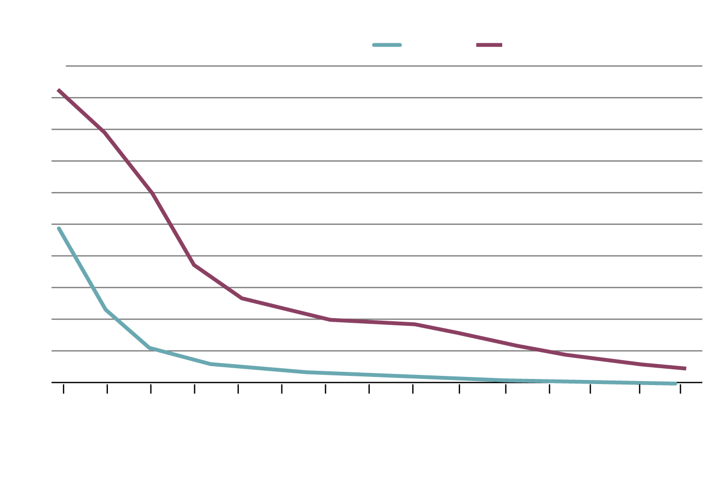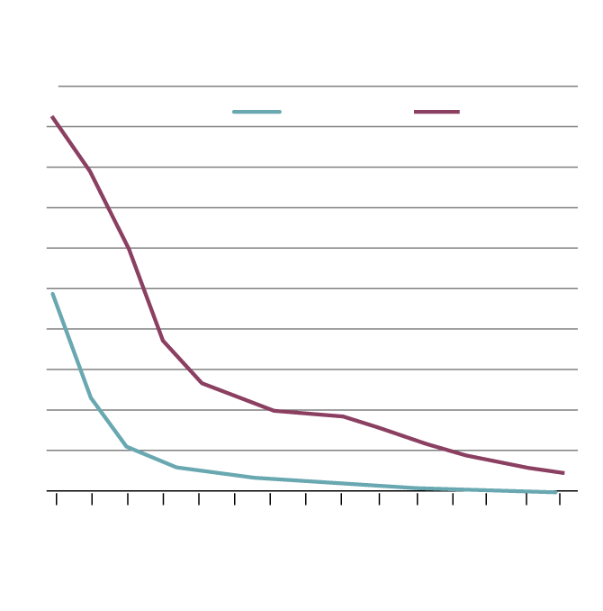 Per cent couples by age group, 1981 and 2021