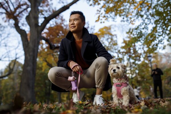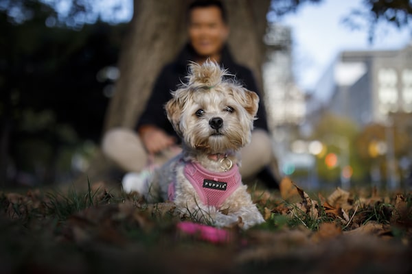 Garry Ho with his puppy, a nearly one-year-old Shih Tzu named Bailey, at a Toronto park on Nov. 10, 2021. He's one of many people that have brought a new pet into their home during the pandemic.Cole Burston/The Globe and Mail