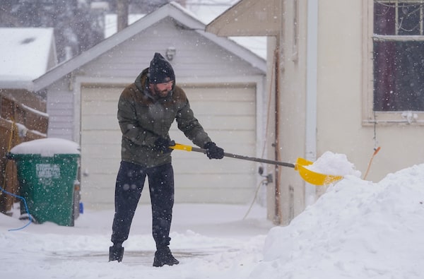 Justin Fisher shovels snow in Saskatoon, Sask., on Feb. 26.Heywood Yu/The Canadian Press