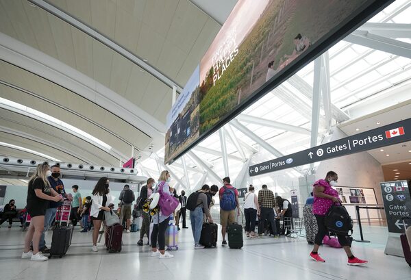 People line up at Pearson International Airport in Toronto, on Aug. 5.Nathan Denette/The Canadian Press