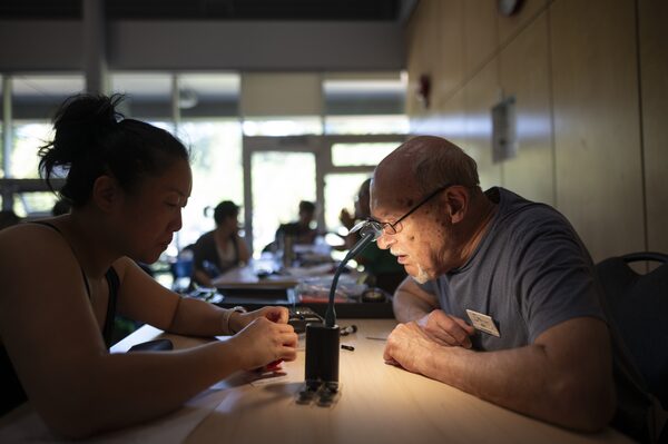 Bob McFadden helps shine some light as Ron Lichtenwald works on a paper shredder as part of the repair cafe, hosted by the Society Promoting Environmental Conservation and the City, at Hillcrest Community Centre, in Vancouver, on July 20.Tijana Martin/The Globe and Mail