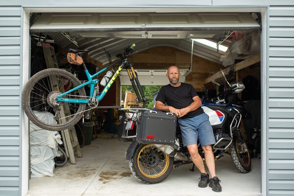 Phil Yates, a recent retiree, leans against his dual motorcycle-cyclist setup inside the garage at his property in Fenelon Falls, Ont.Shay Conroy/The Globe and Mail