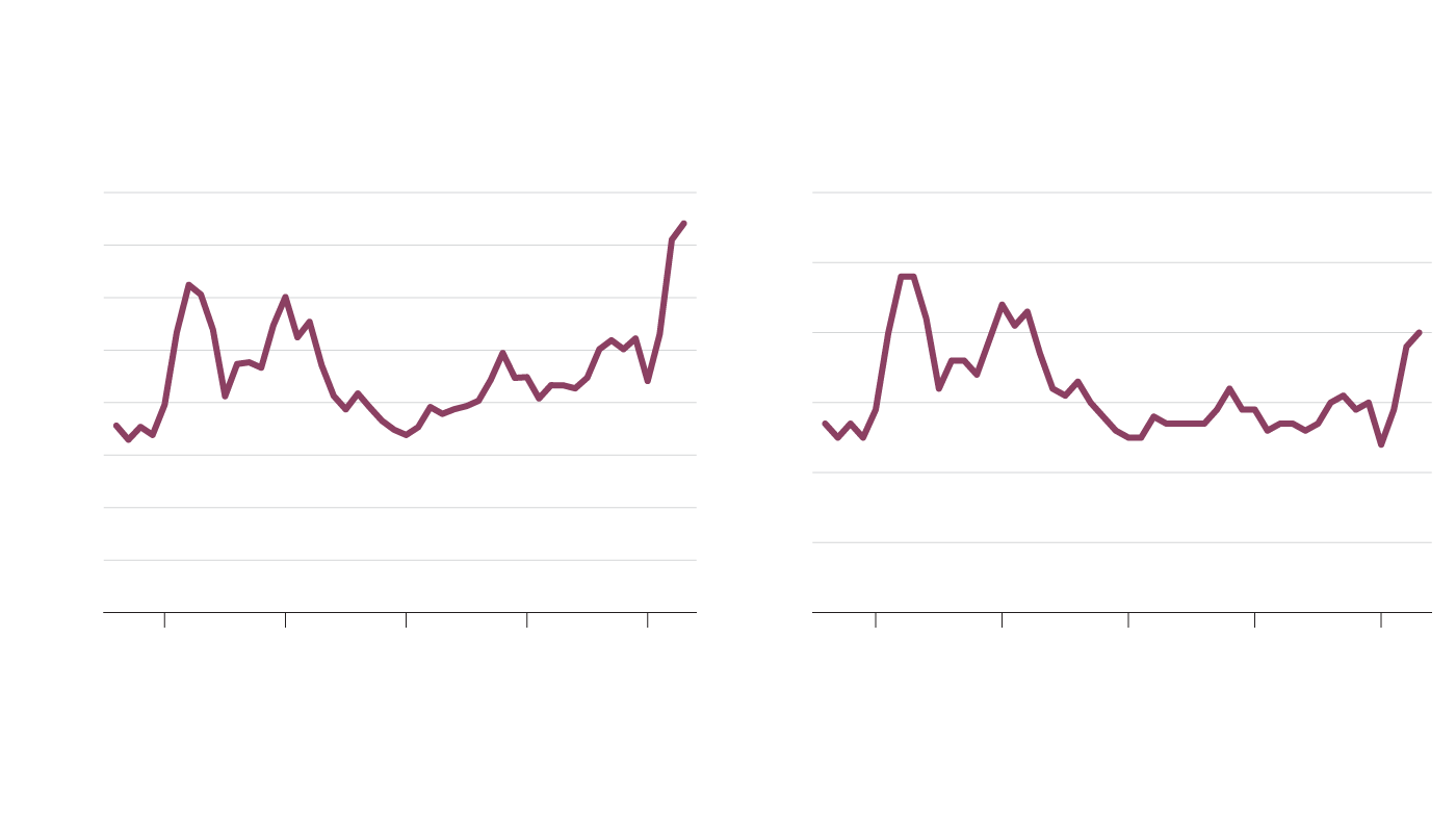 Owning a house is a key element in retirement planning but affordability appears to be at an all-time low. The chart shows there is some truth to this perception. When measured in constant 2021 dollars (right-hand scale), mortgage payments have been higher in the past two years than at any time in the past half century. On the other hand, if we express mortgage payments as a percentage of median household income (for economic families), we find that paying off the mortgage was more difficult in the early 1980s than it is now.