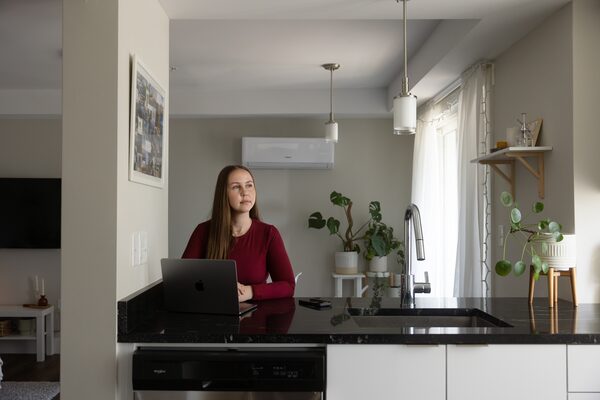 Erin Spencer, a finance and lifestyle content creator sits at her kitchen island, where she films most of her content for social media, in her Halifax home on March 3. She is a real life example of an upcoming study on how Canadians are changing their financial strategies including cutting back on spending as economic uncertainty looms.Carolina Andrade/The Globe and Mail