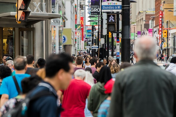 People walk at Dundas Square in Toronto on Wednesday June 28, 2017.Mark Blinch/Globe and Mail