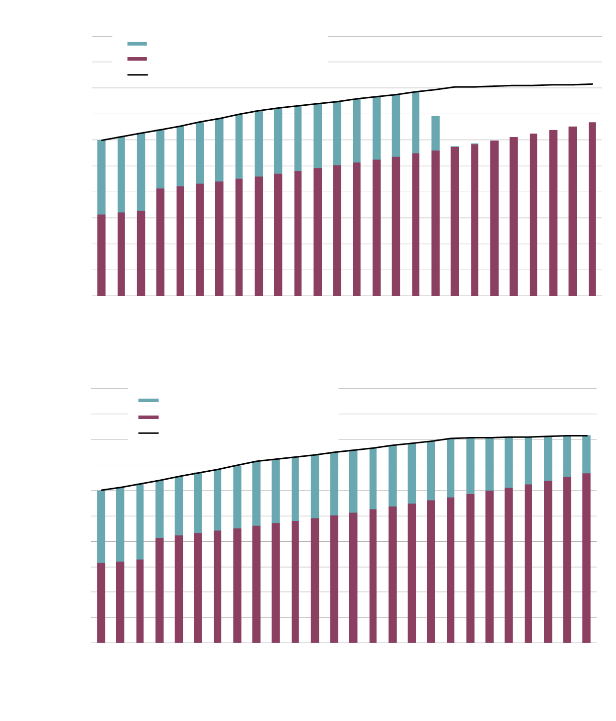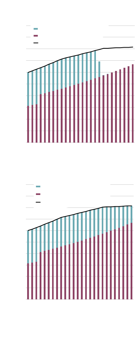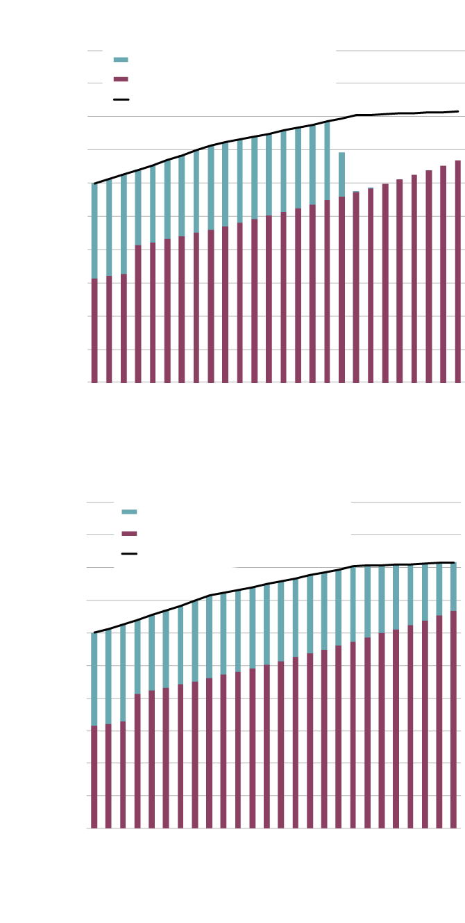Nick and Susan are determined to avoid the situation in the top chart, so they get out of stocks and bonds. Instead, they put all their money in a savings account with one of the Big Six banks. Bank accounts don’t pay much these days, but as long as savers leave their money in the account for 360 days, they will receive interest at the rate of 2 per cent per annum. Investing in a savings account for the long term seems the height of folly, but take a look at the second chart. As long as the 2-per-cent interest rate stands up, the Thompsons can now draw enough income each year until the age of 90 to meet their target, even assuming an inflation rate of 2.2 per cent.