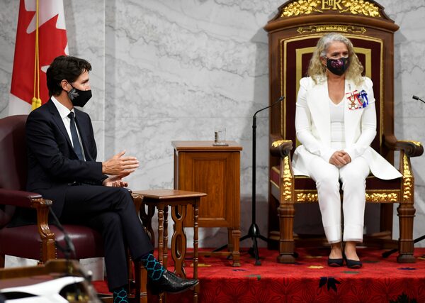 Prime Minister Justin Trudeau waits for Gov. Gen. Julie Payette to deliver the Throne Speech in the Senate chamber in Ottawa on Sept. 23, 2020.Adrian Wyld/The Canadian Press