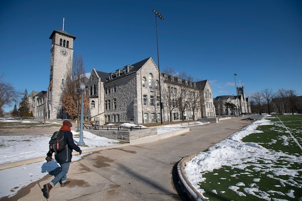 A pedestrian walking along the path near Kingston Hall on the campus of Queen's University in Kingston, Ont., in January, 2021. A 2019 review of the experiences of low-income investors with group RESP providers by researchers at Queen’s University and the University of Winnipeg reported inaccurate marketing materials and high-pressure sales tactics by sales representatives.Fred Lum/The Globe and Mail