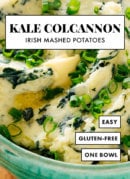 You’re going to love these Irish mashed potatoes with kale. This colcannon recipe is the perfect side dish for St. Patrick’s Day. So creamy and delicious! Recipe yields 8 modest side servings, or 6 medium.