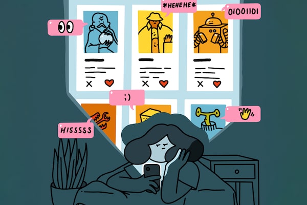 Many single Canadians struggle with finding love on dating apps and seek real-life alternatives.Illustration by Allison & Cam