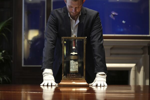 The bottle sold Saturday is the first to have undergone reconditioning by the distillery ahead of auction. This included replacing the cork and applying new glue to the corners of the bottle labels.