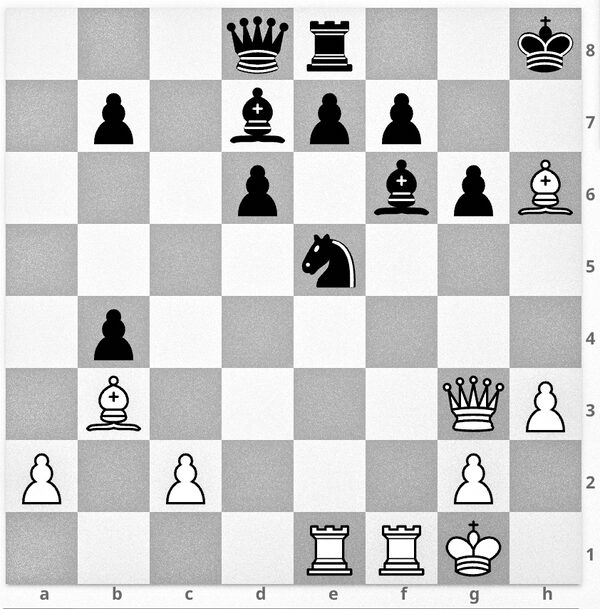 White played 27.Rxe5 dxe5 (if Bxe5 White has a nice move in 28.Bg7+ winning). 28.Bxf7 Bf5 29.Rxf5 gxf5 30.Bg7+ and Black resigned.