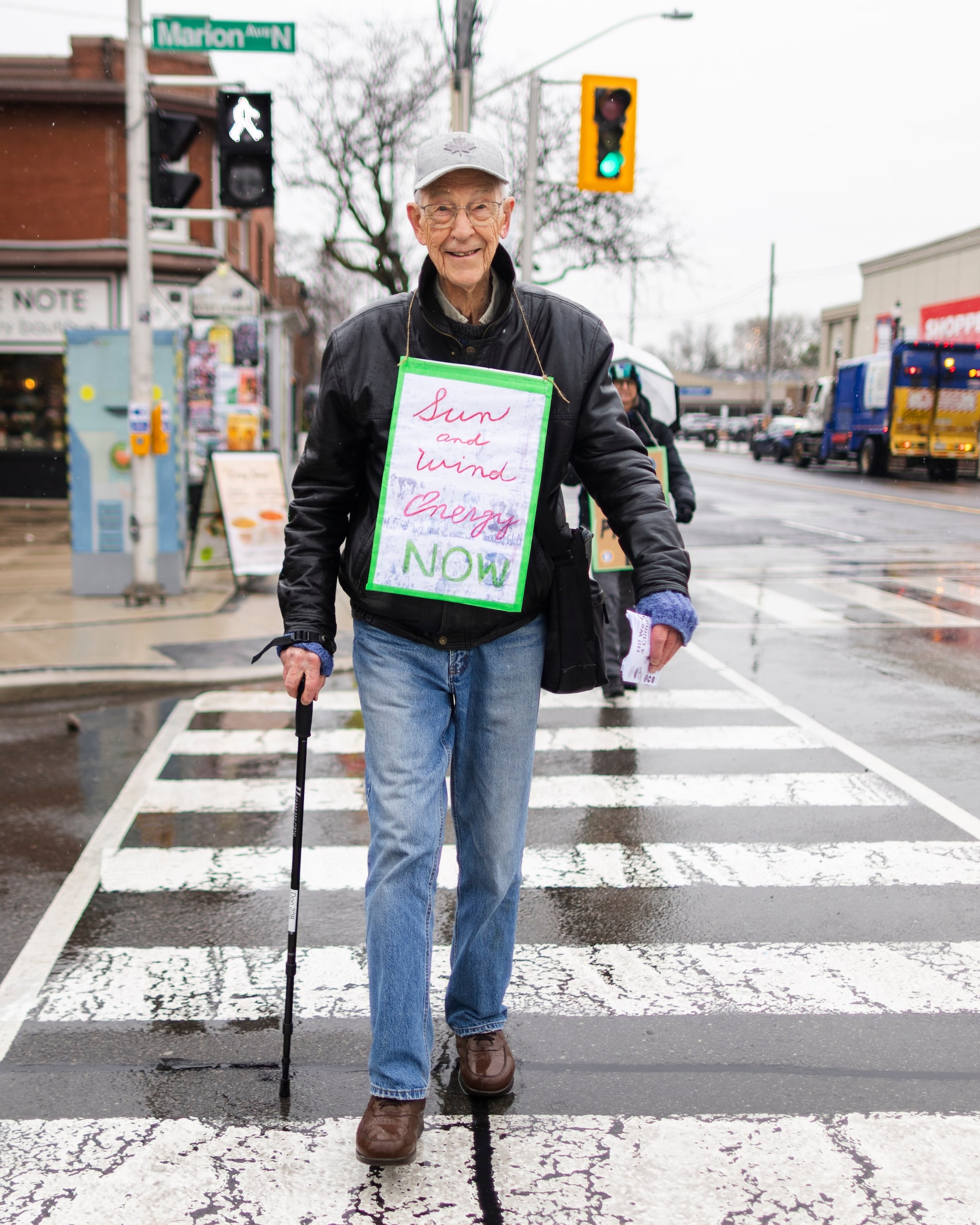 These days, Mr. Brown and his fellow Elders gather every second Friday at one of three bank corners: nodal points in Hamilton and the outlying communities of Westdale and Dundas. They hold banners calling out the banks for their fossil fuel investments and distribute leaflets to interested passersby, explaining the merits of credit unions.