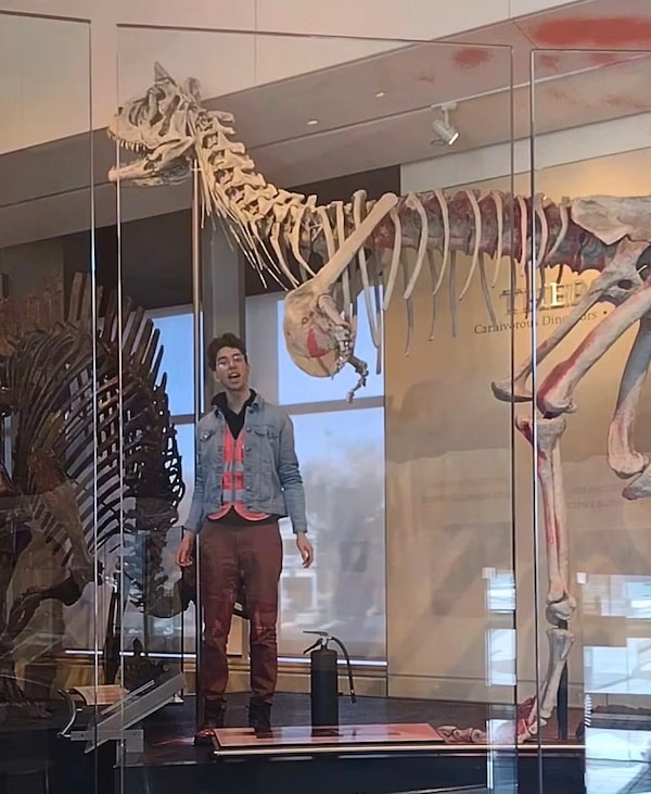 As a member of climate justice group Last Generation Canada, Concordia University student Étienne Eason went to jail in 2024 after vandalizing an Ottawa museum dinosaur replica to protest climate change.ROGER LEMOYNE/The Globe and Mail