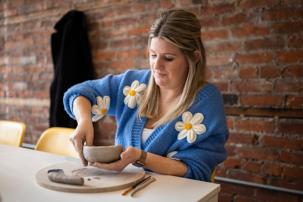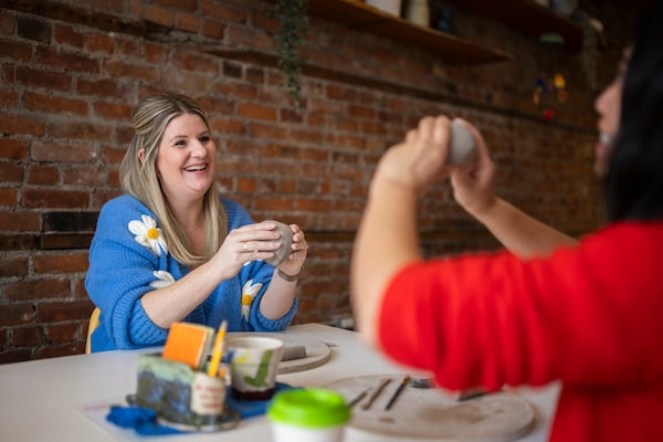Libby Ward, social media personalty and the author of Honest Motherhood, speaks with Globe and Mail reporter Ann Hui during a pottery class in Hamilton, Ontario, on March 24.Nick Iwanyshyn/The Globe and Mail
