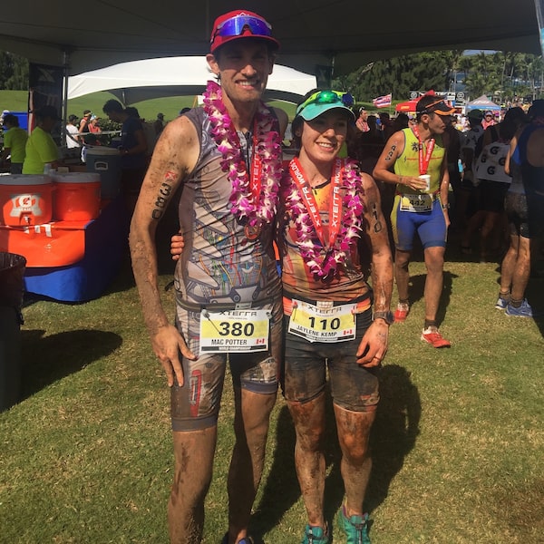 Mac: We talked again after, but her brother came by and I thought he was her boyfriend, so I left. I didn’t see her again until the next Ironman, where she caught up to me on the run. She said, “Hey, how’s it going?” But I was suffering way too much to talk. So she said “I’ll keep going now,” and finished so far ahead of me that she didn’t wait for me at the finish line.
