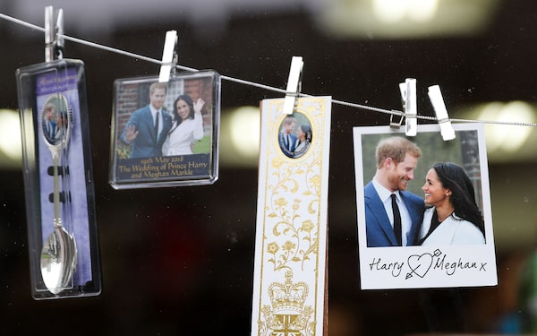 In deciding to limit the attendees to close friends and family, the couple is keeping things low key. Similarly, instead of wedding gifts large or small, the couple would prefer that donations be made to charities. Here, memorabilia on offer in the tourist shops of Windsor, west of London.TOLGA AKMEN/Getty Images