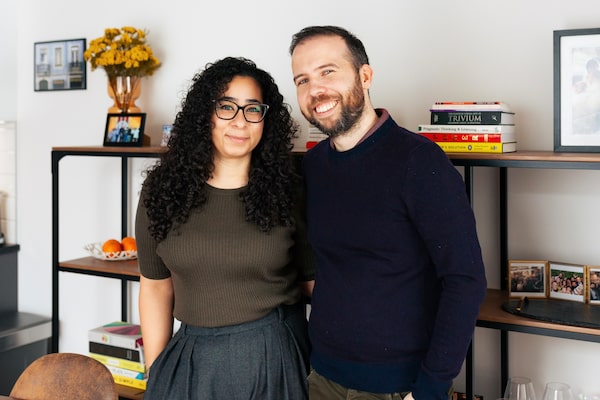 Carol Mahna and Matt Whitworth in their Montreal home. The couple moved from London, U.K., in August 2024.Karene-Isabelle Jean-Baptiste/The Globe and Mail