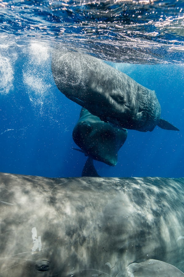 They happened to be test-flying new drone cameras, another stroke of good fortune. From two boats, CETI-1, a catamaran, and CETI-2, a rigid-hulled inflatable, they captured footage over more than five hours from the sky and at the surface, while hydrophones recorded sound underwater – unprecedented detail of the most essential milestone in any social animal’s culture: the beginning of life.
