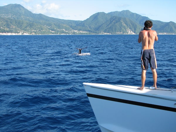 Standing at the bow of the 40-foot catamaran, on a rolling sea off the Caribbean coast of Dominica, Shane Gero barely felt the rain. He refused to take his eyes off the ocean until someone else made the call to head back to shore.