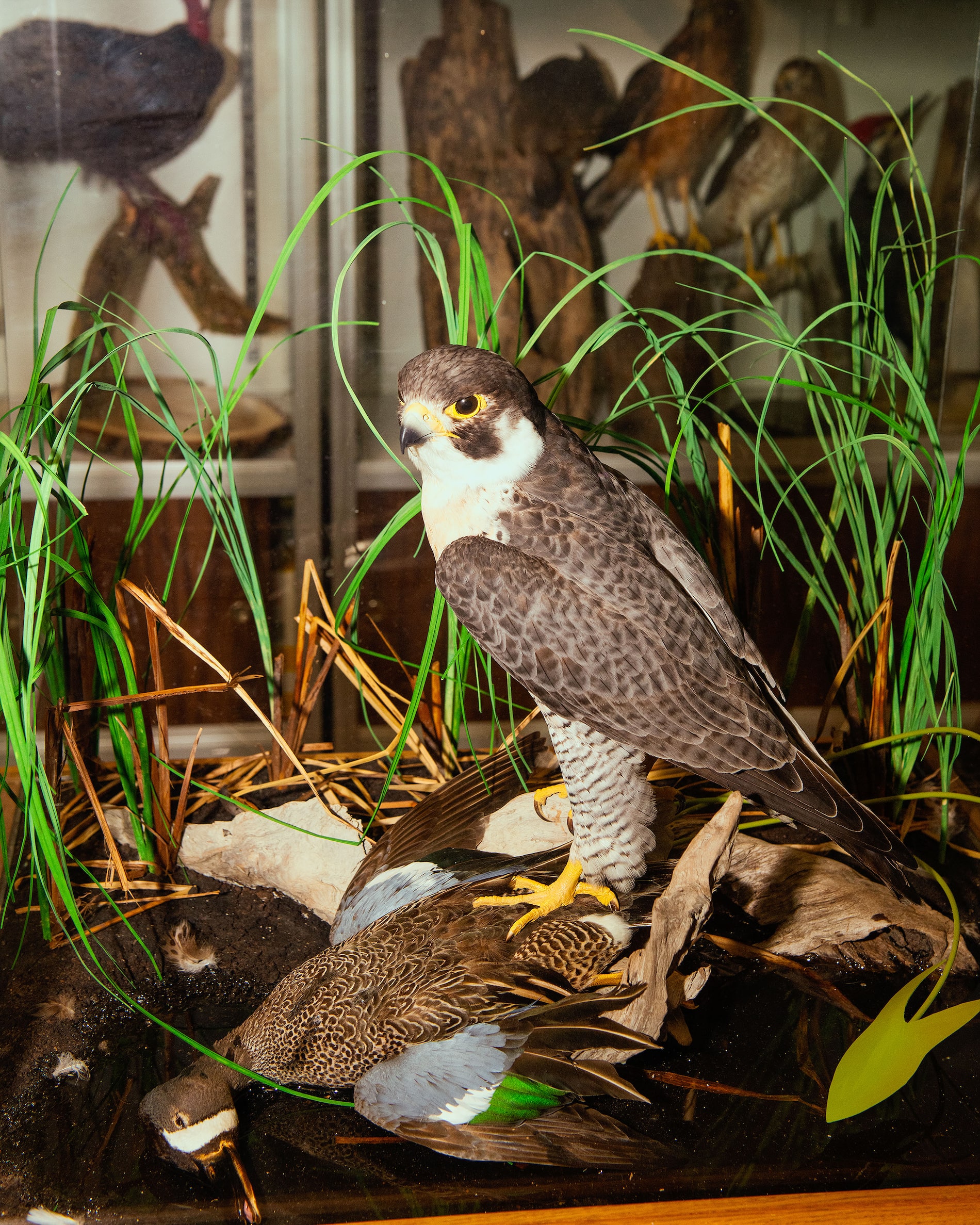 He examined the bird. “A fantastic specimen,” he said. “Likely a young mature female.” He showed me some of his award-winning mounts – a kestrel, golden eagle, great horned owl, peregrine falcon, dozens of small birds. So perfect, so lifelike. The only thing missing was a cacophony of chirps.