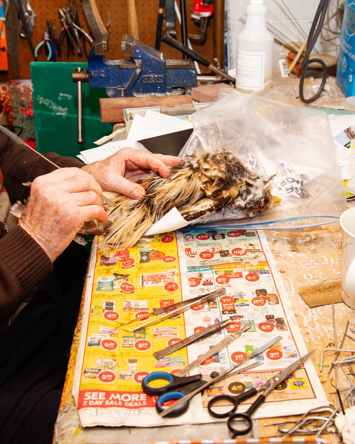 Morrison works from a small room in the basement of his home in Peterborough. A sign at the end of his driveway reads Feathers Alive Bird Taxidermy. I found him at his desk and mumbled something about my owl. “The proper term is ‘mounted,’” he said. “But thank you for not saying ‘stuffed.’”