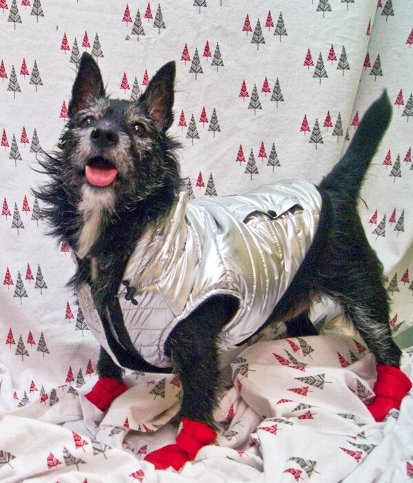 What a breath of fresh air Fanny is. She’ll put a smile on your face the moment you meet, guaranteed. At just four years old, this little girl has certainly had her fair share of diagnoses: urinary tract infections, proteinuria, whipworm, Lyme disease, the list goes on. But none of this seems to affect her one bit: She’s got a pep in her step and can’t wait for your affection. Some shelters would euthanize Fanny because of her ailments – but the Toronto Humane Society (THS) is committed to finding her the best home, for the rest of her life. Because of her health concerns, the THS will cover all food and medical costs – she’s technically listed as a palliative foster, which just means she needs a loving, dedicated home, and the THS will cover all the bills. She’s rocking the Canada Pooch shiny puffer vest ($48) and fleece-lined wellies ($24).