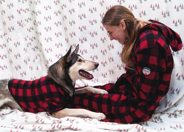 The Globe’s photo shoot at the THS is the highlight of my year, and this picture sums up why. I get to hang out (and receive endless kisses from) dogs who have been truly transformed – such as sweet Jenna, who was never given direction or structure as a pup and was returned to the THS twice by people unable to put in the work she needs. But perhaps equally uplifting is spending time with staff and volunteers who are so dedicated to these animals’ rehabilitation, such as trainer Kassie Dickson, who has spent countless hours working with Jenna with patience and skill. Their bond is undeniable, and just being around these two is good for the soul. The duo was the perfect pair to model the made-in-Canada, matching human-canine onesies from Toronto-based Snug as a Bug. ($79.95, $24.95)