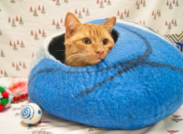 The cat cave (amazon.ca, $79.30), made in Nepal, is wildly popular among cat bloggers – but looking at it, I didn’t see the appeal. It’s a felt ball. That is, until Rogers entered the room, hopped right in and refused to leave. When his photo shoot was over, he had to be transported back to his kennel while still in the cave. He lives in the cat cave now – and he deserves the luxury: The two-year-old happy, meowing boy has two medical conditions that affect his immune system, but fear not. Rogers has been diagnosed as “regressive,” and can live a perfectly happy and healthy life.