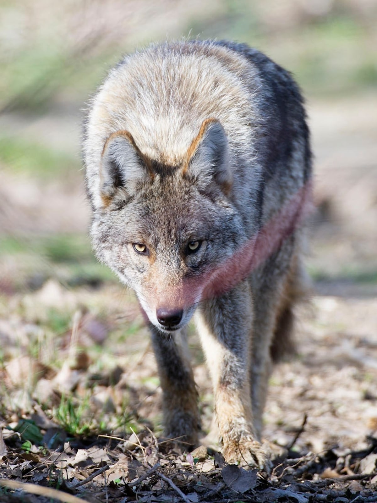 Surrounded, both dogs wriggled off their leashes. When Kahlua ran at the approaching coyote, the other four pursued him into an overgrown area. Mr. Youngson ran behind, finding his dog badly bitten and surrounded by six coyotes. He grabbed Kahlua by the choke collar and backed up out of the brush, amassing cuts and bruises, plus bites from his panicked dog in the struggle.