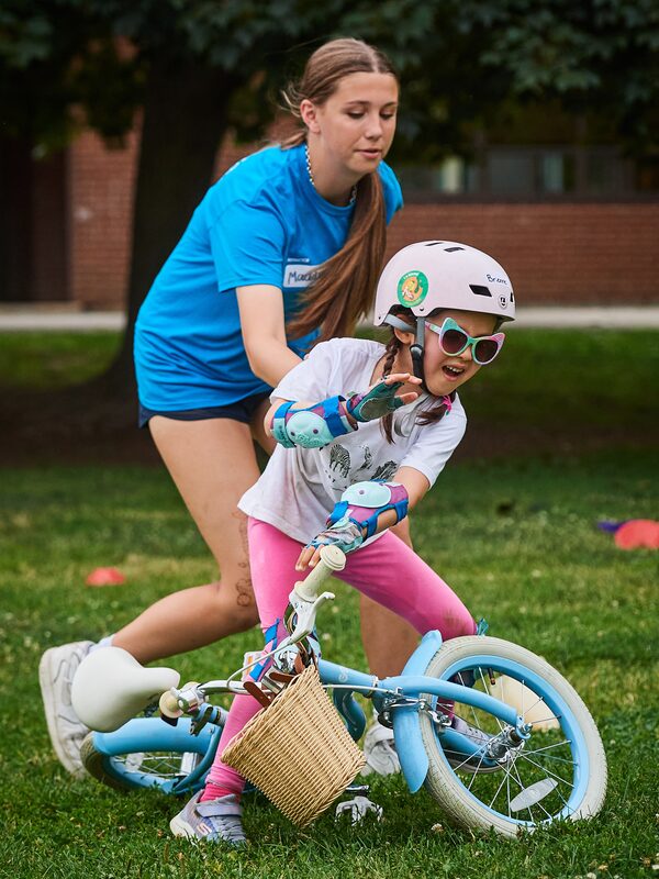 As Brienne pedalled, her instructor, a 16-year-old named Maddie, jogged alongside, holding her steady. Once they returned to the starting point, Maddie said it was time for the training wheels to come off.