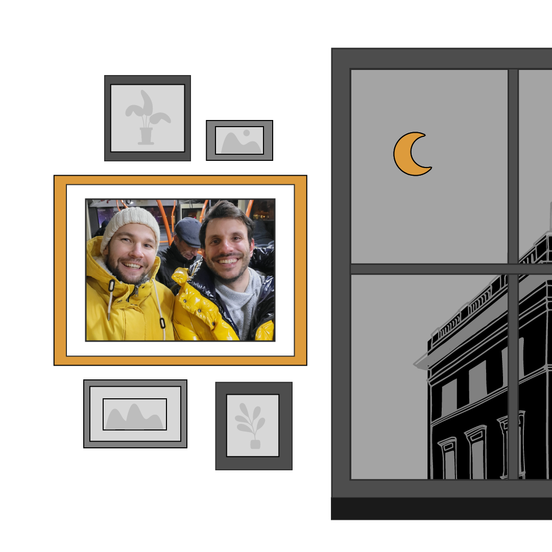 I met Sarah in 2018 when she showed up as someone’s Tinder date to a Halloween party I was hosting. A year later, we had our own first date on a lavender farm. Purple ice cream dripped from our cones as we walked through flower fields. Six months, one bee sting and an impromptu trip to the Algarve later, I moved into Sarah’s townhouse for the “two-week” lockdown in March, 2020. Suffice it to say, I never left! Against the backdrop of the pandemic, life in our cozy house teemed with board games, challah baking and wedding planning. We celebrated our marriage at the University of Toronto’s Hart House with our loved ones in September. Our guests were serenaded by the university’s talented music students, brought to tears by their marvelous officiant and danced into the hot night surrounded by 1,000 lovingly hand-folded origami cranes.