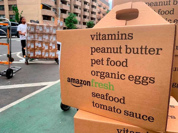 Boxes of Amazon Fresh deliveries are unloaded in New York on June 16, 2019.The Canadian Press