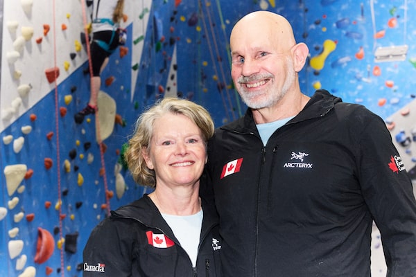 Patti Hoddinott is her husband Terry’s sight guide. In this role, she describes his surroundings, helps him locate holds and flags obstacles.Javier Lovera/The Globe and Mail