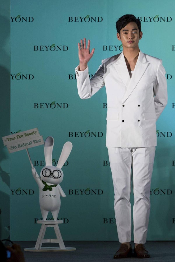 And now let’s wander as far off the beaten path as possible. Here we see the hugely popular South Korean actor Kim Soo-hyun shamelessly shilling for a cosmetics company in Hong Kong. No bunnies were harmed in the making of this commercial.Tyrone Siu/Reuters