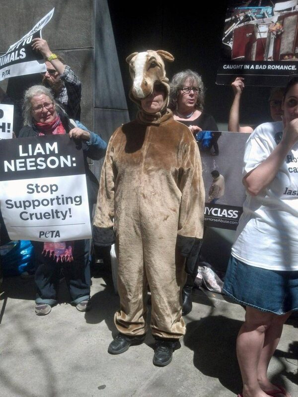 Elsewhere in the Big Apple, a gaggle of raggedy protesters showed up outside the residence of actor Liam Neeson to protest his support of carriage horses in Central Park. Guys, if you want to make on the front page of the Daily News, at least rent a decent Mr. Ed costume.Verena Dobnik/The Associated Press
