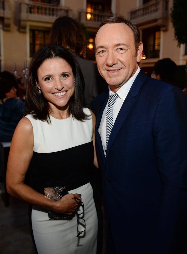 Also in the house: Emmy nominees Julia Louis-Dreyfus and Kevin Spacey, who play a dim vice-president and a ruthless political shark on their respective series (Veep and House of Cards for you non-TV types). Don’t let their smiles fool you. They’re really bitter enemiesJordan Strauss