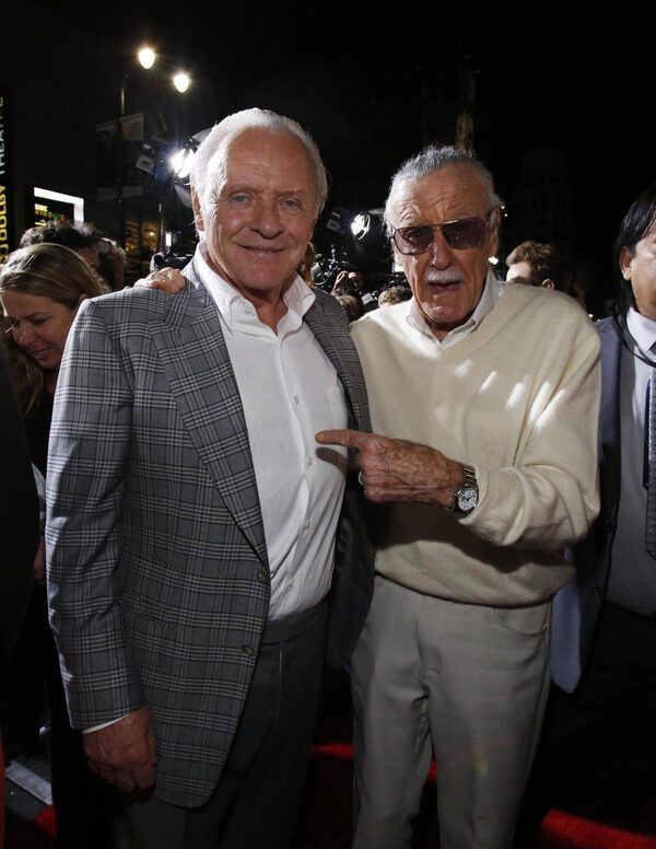 And here we have Oscar-winner Anthony Hopkins, who portrays Thor’s dad Odin in ‘Thor: The Dark World,” posing with former Marvel kingpin Stan Lee, 90 years old but still cashing in on comic book characters he created 50 years ago. Excelsior!MARIO ANZUONI/Reuters