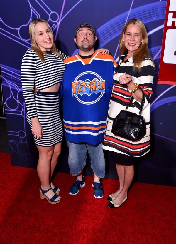 ‘You call that embarassing your family?’ sneered Kevin Smith, shown here with daughter Harley and wife Jennifer Schwalbach Smith. ‘Now this is embarassing your family.’Alberto E. Rodriguez