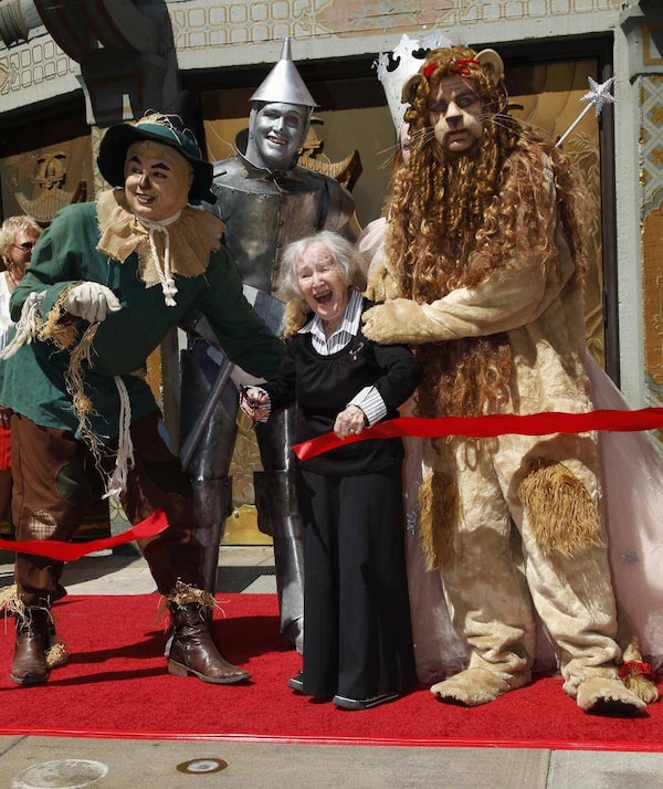 Ready to trip down the Yellow Brick Road? One of the last living Munchkins, Ruth Ducccini. 95, fends off the advances of the Cowardly Lion at the premiere of ‘The Wizard of Oz 3D’ in Los Angeles.FRED PROUSER/Reuters