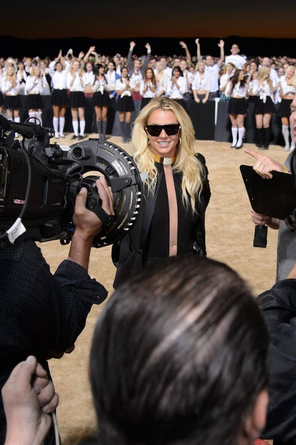 Britney Spears breezes into the event to announce her new show at Planet Hollywood Vegas, completely unaware that she’s forgotten to wear part of the outfit her conservator laid out for her that morningPowers Imagery/The Associated Press