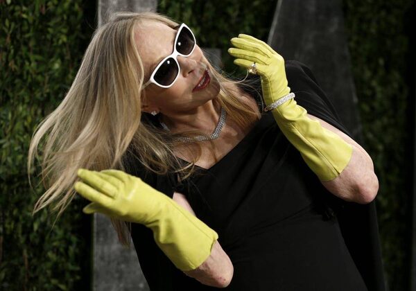 Faye Dunaway adjusts her hair wearing the same gloves I’d have on if I’d washed my hair with bull testicle soup at the Vanity Fair Oscars party in West Hollywood on Sunday.Danny Moloshok/Reuters