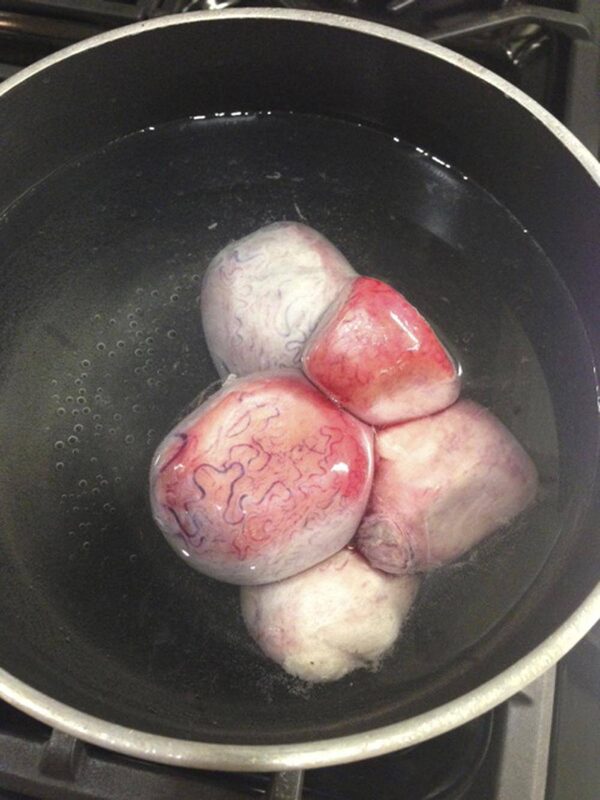 Bull testicles boil in a pot of water to create a broth that is used as a hair treatment for movie stars at a salon in Santa Monica, Calif., last week.Supplied/Reuters