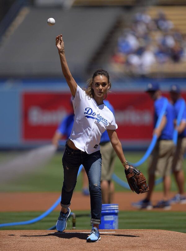 But thespian sports redemption was afoot! Right around the same time in Los Angeles, Jessica Alba threw out the first pitch at a Dodgers-Brewers game and fired the ball across the plate like a young Roger Clemens.Mark J. Terrill/The Associated Press